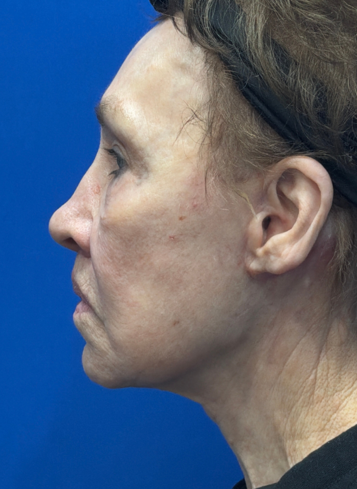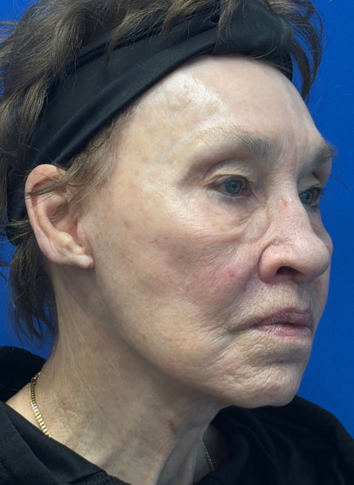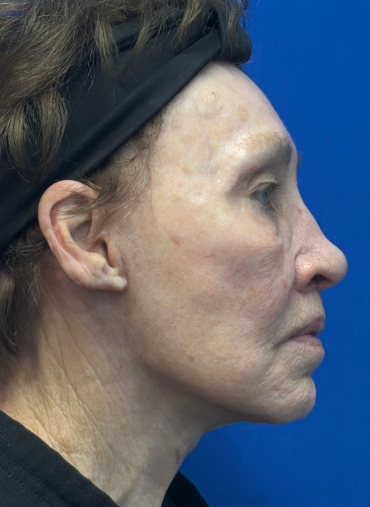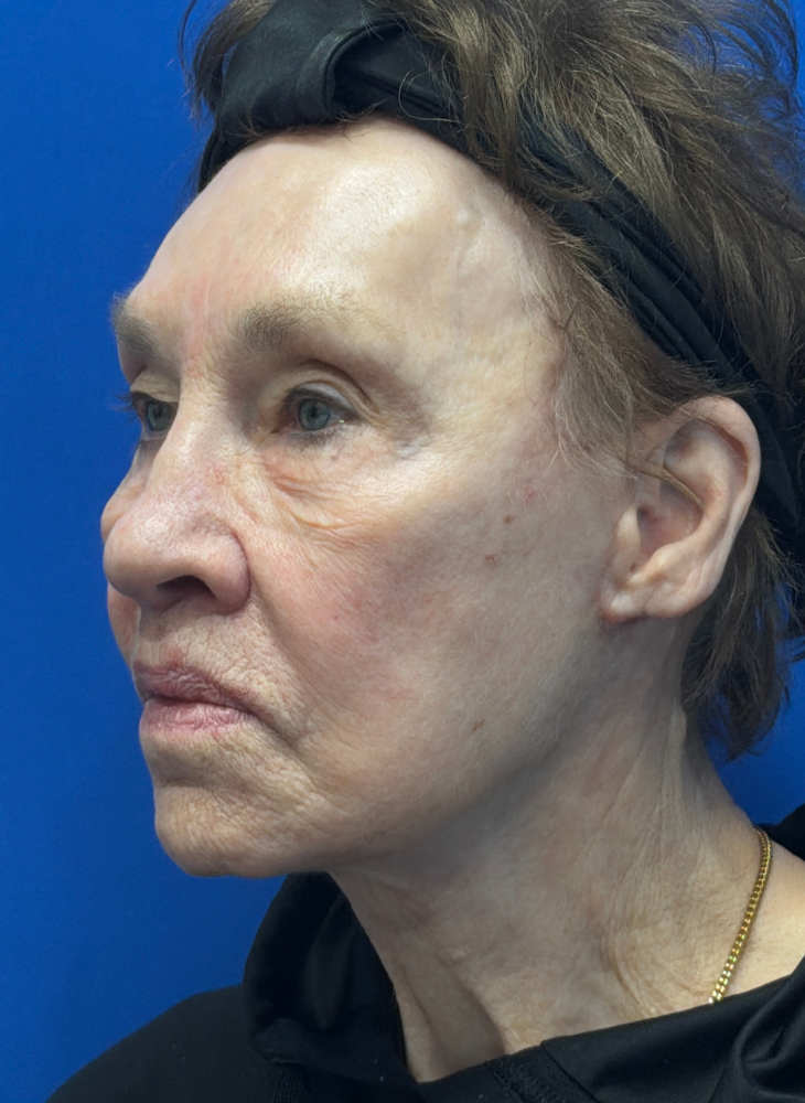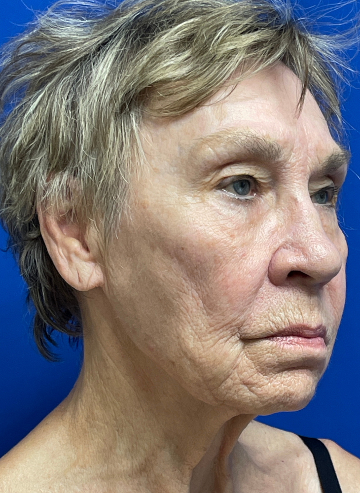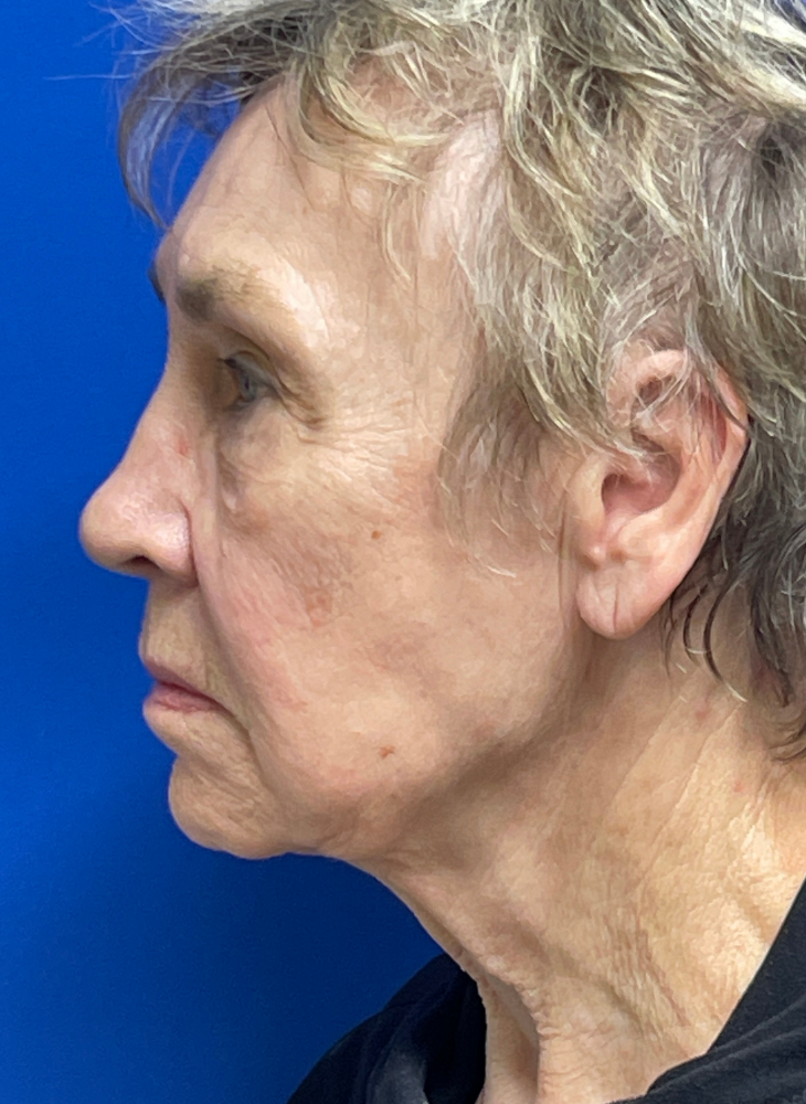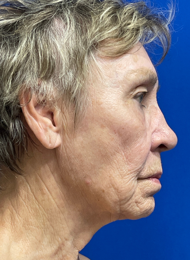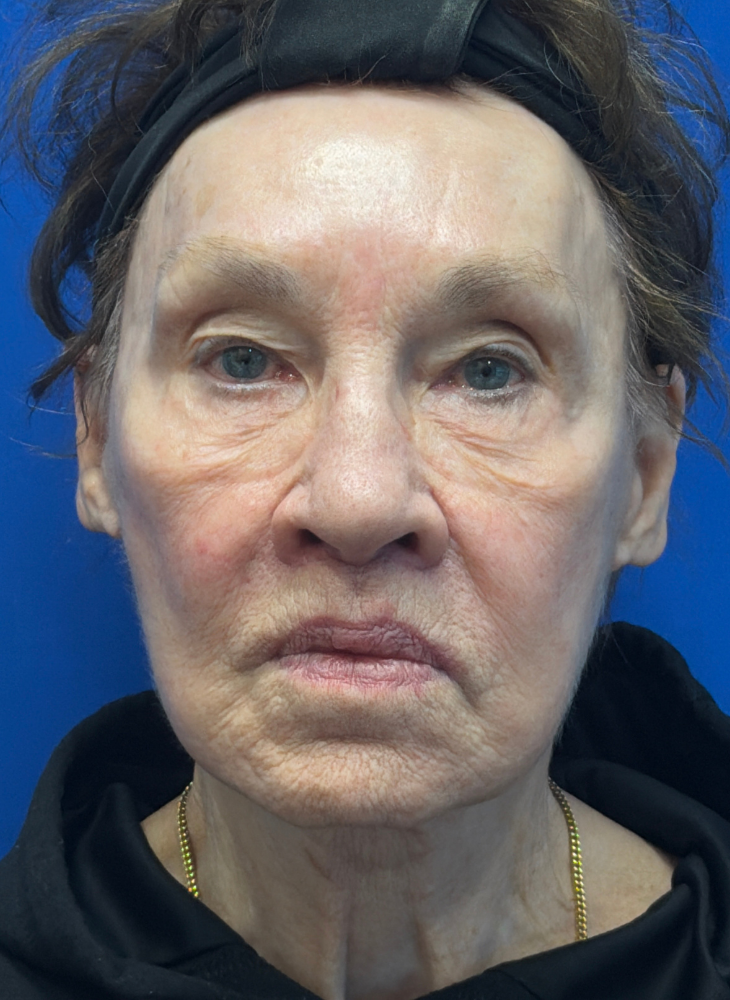 Before & 3 Months Post op. Procedures Performed by Dr. Luck: Facelift, Neck Lift, Lip Lift, Earlobe Reduction & CO2 Laser. Patient Age: 74.