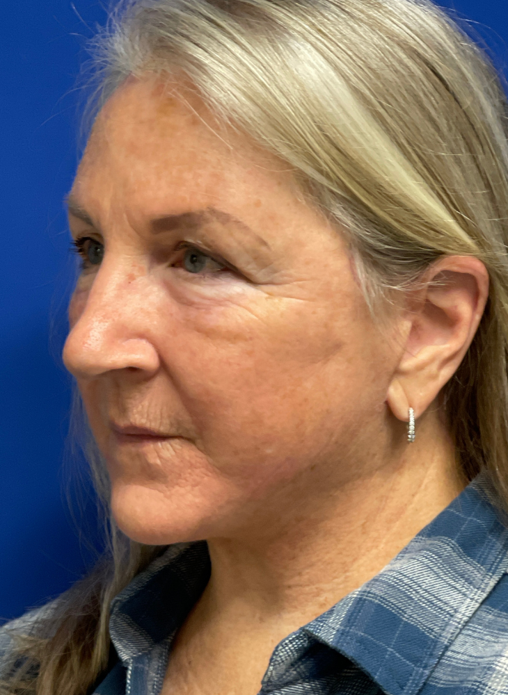 Before & 3 Months Post op. Procedures Performed by Dr. Luck: Facelift, Neck Lift & CO2 Laser Resurfacing. Patient Age: 64.